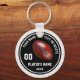 Black and White Football Keychains, Personalized with Your TEXT and Football Team COLORS. You, or Designers Rod and Linda: 239-949-9090 can CHANGE the Black and White Football Keychain background and text Colors. Cheap football gifts for players at your end of football season party. FREE custom designing service by Your Sports Gifts. We can create personalized football gifts, football party supplies, decor, device cases, your choice of thousands of products.
