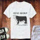 Black and white bull has a faux leather textured grain and the text, "Bull Shirt" above it.