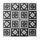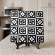 Bold and mesmerizing, this black and white ceramic tile features a symmetrical starburst pattern with geometric precision. Crisp black diamonds and compass-like shapes radiate across a white backdrop, creating a rhythmic visual flow that feels both classic and modern. It’s a striking motif that instantly draws the eye and adds depth to any surface.