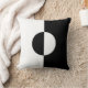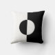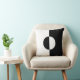 A black and white geometric patterned circle and square throw pillow.