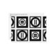 Bold geometric pattern features four black squares with white space between them. The two diagonally opposed thick squares each contain a thin black circle with a thick equal sign inside. In contrast, the two thin squares each contain a thick black circle that touches the square’s edges with a thin vertical equal sign inside.