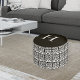 Our graphic patterned pouf features a modern take on the tribal motif with a repeating geometric pattern of triangles and chevrons in crisp black and white. Personalize with your single initial monogram on the solid black top.
