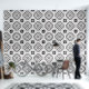 A stylish modern black and white geometric abstract shapes and quatrefoil shaped peel and stick wallpaper wall treatment, to modernize your bath, kitchen, or any room. Perfect when you live in a rental apartment that needs your personal style and touches of design to make things pop. Peel and stick wallpaper is one of the best DIY hacks for apartment dwellers to give them more control over their home decor style! Go wild with patterns and colors. Comes in smooth and textured. Get the textured for bumpy textured walls, and smooth or textured for smooth walls.