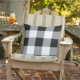 Pillow design features a casual gingham plaid / check pattern that is perfect for summertime! Note, you can customize the black background color to coordinate with your outdoor decor.