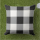 Black and White Gingham Plaid Pattern Outdoor Pillow
