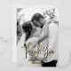 Extend your heartfelt thanks with this exquisitely personalized Thank You wedding card. Featuring elegant black and white photos of the newlyweds and the option for real foil print accents in your choice of gold, silver, or rose gold, this card emanates timeless sophistication. Turn it over to discover a heartfelt message section that you can tailor to your liking. With limitless customization possibilities, this card offers a unique and meaningful way to convey your gratitude with a personal touch. Choose the foil shade that perfectly complements your style and make a lasting impression with this truly exquisite Thank You card. Your guests will be touched by this extra touch of elegance and appreciation.