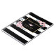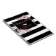 Elegant black and white striped floral notebook featuring pink flowers framing the wedding details. Easily personalize this black and white wedding notebook with your name(s) and date.