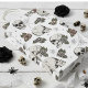 Hand-drawn in black ink, this gift bag features a beautiful pattern of skulls, roses and spiderwebs in cream and blush tones, all against an elegant black and white background.