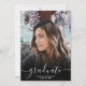 Yes, you can print on the back of your invitation for free! Most designs already have a corresponding design on the back that can be personalized using the Design Tool and going to Layers. This is a great way to communicate more information or further personalize your Black And White Graduate Script Photo Graduation Invitation. The option is really up to you.