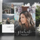Black and white graduate script 4 photos graduation announcement. Add 4 of your favorite photos with an elegant script calligraphy and photo grid collage.