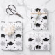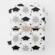 Black and White Graduation Cap Pattern Wrapping Paper Sheets