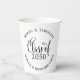 Celebrate in style with these classic disposable paper cups—the perfect addition to your graduation party! Featuring a black and white design with elegant calligraphy script, these cups add a chic touch to your grad party supplies. Personalize with the graduate name template and class of year for a unique keepsake. Stylish typography makes them both cute and sophisticated. Elevate your celebration