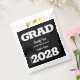 GRAD and your class year in bold white letters with your name and thank you message in the middle on a black background or any school color. Lots of colors done for you and MATCHING items in our store.