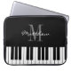 Black and white grand piano keys custom monogram laptop sleeve.