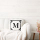 Black and White Greek Key Border Monogram Throw Pillow