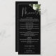 This elegant black and white floral botanical greenery leaves wedding menu can be personalized with your information in chic typography with your monogram initials on the reverse. Designed by Thisisnotme©