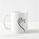 The mug shows a moment in time with a hand sketched in black and white on two sides of the mug. This hand can portray a thankful spirit and a kindred spirit alike making it the perfect gift for a friend. The palm of this hand is extended showing vulnerability and an invitation to continued friendship .