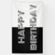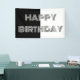 This stylish banner is ideal for displaying a Happy Birthday greeting, whether at home or at a party venue. The banner uses simple monochrome black and white, in a cool Op Art style. The retro typography and bold minimalism make this banner a stand-out choice.