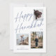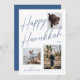 This casual, yet elegant photo holiday card features three photos and reads "Happy Hanukkah" in a navy blue script font.