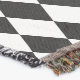A quality printed throw has its advantages. This is a much finer weave throw than its loopier cousins, and though lighter, it is worth the investment for custom room accessorizing. The back is much prettier than the typical brown, and the fringe on the long sides very vivid, the selvage nicely done. Before photographing, I washed the throw in cold water, delicate, with a thicker woven throw the same size. On tumble dry low, this throw was dry in half the time as the other. This is a very practical quality if you use throws for furniture covers or to wrap up in frequently. The sleekness of the fabric makes it a great layer for accenting or protecting without the feeling of sitting on too much stuff. Perfect for napping or when you feel a light chill coming on. The color printing is beautiful and on this fabric, matched the design and color of my Photoshop image. This is an advantage for blending room fabrics and colors. The fringe on the short sides prints the colors from the design image and therefore varies from the side fringe. I streaked a white fractal line through the plaid pattern to give the illusion of weaving. This printed as crisp as an illusory thread, and put some white in the short side fringe, showing another advantage of print vs loomed- for artistic purposes, line lines, detail, and color integrity can be planned and preserved. My loomed throws have color limitations and more of a needlepoint texture. Print throws reproduce an exact image. The throw felt a little stiff straight out of the package, but this went away in the first delicate wash. Of course I searched the wash water for ink or bleeding and there was none.