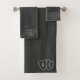 Rustic black and white style bath towels with entwined hearts for your initials. Makes a great gift for newlyweds