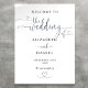 This elegant black and white heart script wedding welcome sign can be personalized with your information in chic typography. Designed by Thisisnotme©