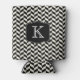 Black and White Herringbone Pattern with Monogram Can Cooler