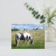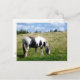 A beautiful black and white horse / pony grazing at the bottom of a grassy hill. At the top of the hill you can see a glimpse of humanity. Horse & pony photography postcards can make great miniature wall art for horse and pony lovers. Just pop them in a frame! Collect them all! Photography © Lisa Marie Robinson