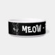 Black and white illustrated Cat food bowl with 'Meow - Feed me now!' text
