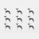 Destei's original cartoon illustration of a cute black and white color Italian Greyhound / Iggy breed dog. The dog design is placed multiple times on each sheet. The background has a pattern of gray dog paw prints.