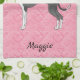 Black And White Italian Greyhound On Pink Hearts Kitchen Towel