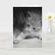 Adorable black and white photograph of a curious kitten just woken from his nap.