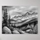 Black and white landscape painting of mountains poster