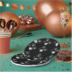 Featured is a black and white Lawn Bowls Pattern Made with black lawn bowls and a kitty.