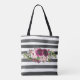 Black and White Lines and Floral Tote Bag