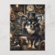 Black and White Long Haired Steampunk Chihuahua Postcard