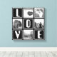 Add a black and white effect on your photo.Trendy style photography grid. You can replace black squares with your own pictures and delete LOVE