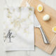 Black and white marble gold sparkle flake Monogram Kitchen Towel