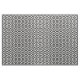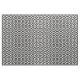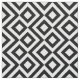 Stylish modern fabric features an original, bold black and white geometric pattern. White meanders angle around black diamonds containing white diamonds. Black zigzags provide subtle separation between the winding paths.