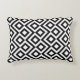 This stylish black and white geometric pattern accent pillow features an original ornamental design. White meanders angle around black diamonds containing white diamonds. Black zigzags provide subtle separation between the winding paths.