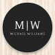 Black and White Minimalist Modern Monogram Round Paper Coaster