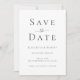 Keep it sleek and sophisticated with this Black and White Minimalist Save the Date Card. Featuring a bold yet elegant typography design, the words "Save the Date" take center stage in a modern serif font, complemented by a stylish script accent. The monochrome color scheme ensures a timeless, clean aesthetic, perfect for contemporary couples who love minimalist design. Fully customizable, this card allows you to personalize the details while maintaining its effortlessly chic and modern appeal.