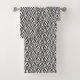 Black and white leaf pattern repeat pattern stripe style towel. Ideal for a modern black and white bathroom. You can also add an accent color if required. © Pattern art and design by Sarah Trett. www.sarahtrett.com for www.mylittleeden.com