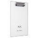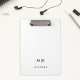 This modern clipboard design features a simple white background, with your initials in bold black text for a look that is simple and professional.