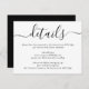 Provide your guests with important details with this elegant modern black and white wedding enclosure card featuring a modern script font. Matching items available. Custom requests welcome.