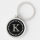 Stylish monogram key chain done in black and white. A solid black circle is surrounded with white polka dots, on the outside and a single letter white letter, in the center. Personalize the initial to what ever letter you want. Makes a great gift idea.