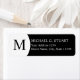 A black and white design featuring name and address in white professional font style with black monogram on white side border on black background .