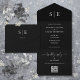 This chic minimalist all-in-one black and white wedding invitation can be personalized with your monogram initials and wedding day information. The invitation includes a perforated RSVP with your wedding website QR code and details. Designed by Thisisnotme©