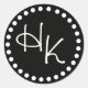 Stylish monogram envelope seals done in black and white. A solid black round sticker, with white polka dots around the edge and white two letter initials, in the center. Great with our matching black and white monogram wedding set.