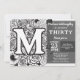 Black and White Monogram Tattoo Flowers Birthday Invitation
